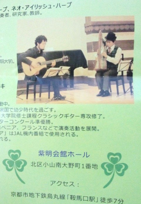 昨日、相方とアイリッシュ・ハープのコンサートに行ってきました♪ 今更ながら、6月に約束していたベルギービール・ウィークエンドに一緒に行けなかった埋め合わせとして、アイリッシュ文学かぶれの相方が誘ってくれたのです。