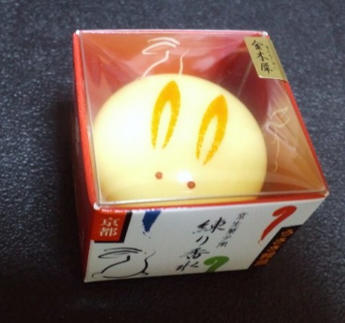 ご覧の通り、愛らし~い京都の和菓子・・・・・・ではなくって 💦、実はウサギ饅頭を模した形の練り香水なんです。ギネスを飲んだあと、ぶらぶらと新京極あたりを歩いていたとき、「いかにも!」ってな感じの観光客向けのお土産がズラリと並んでいるお店(←地元の人は決して入らないような、新撰組Tシャツとか金閣寺柄の手鏡とかが売っているお店です A^_^;))の中で、たまたま目に留まり匂いを嗅いでみたら、私の好きな金木犀の香りがほんのりと薫ってくるではありませんか♪ 見た目の愛らしさも手伝って、思わず一つ買ってしまいました 🎁