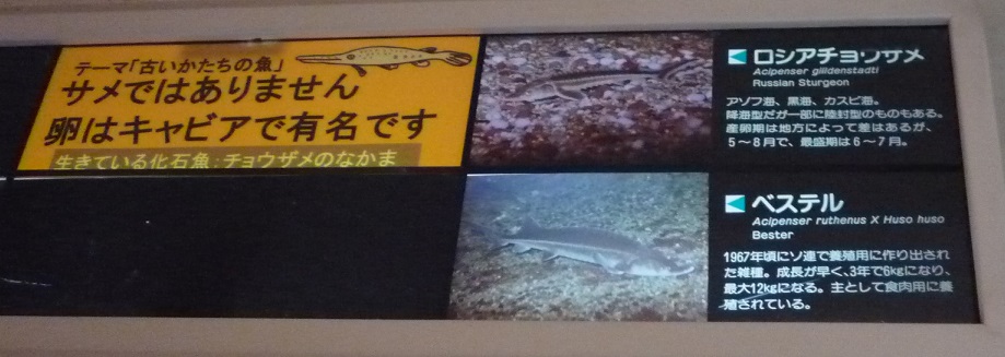 さてさて、 最後はやっぱり、チョウザメ君で締めくくりますか♪ でもこのスマスイのチョウザメ、琵琶湖博物館で観たチョウザメとはだいぶ感じが違っていました。この世のものならぬ威圧感を覚えた琵琶湖博物館のに比べて、ここの二種類のチョウザメたちは、ヘラチョウザメと同様何やら動きがモタクタとして、滑稽な感じがしましたA^_^; 皆ずいぶんと猫背な上に、真ん中▲の画像なんて、「ど、どうしたん!? そんなビビらなくても、私たちは何もしないよっヾ(◎_◎;) 」と声をかけたくなるほど、豆鉄砲をくらったような顔で写っています(笑) ご愛嬌ですねー ( ´艸`) ではでは、 5回にもわたって連載(??)してきたスマスイ訪問記、これにてようやく終了です (^_-)-☆ …… と言いつつ、今月最終週にまたもう一度来館する予定なんですけどね (^w^) 今度はなるべく、カメラ撮影を控えて生の迫力を堪能してこようと思っています。写真や動画を撮るのに夢中になって、レンズの中ばかり覗いていると、ついついネット上の動画を見ているのと同じような感覚になってしまって、生の感動を忘れがちなので。一度ならず複数回訪れる意義は、そこにこそあると思って、いざリベンジ! 前回は前回でかなり満喫できたけど、もっともっと楽しんで参りまする (^^ゞ ←あ、いや、いくら私でも、鮫の水槽で泳いだりはしませんから、ご安心ください(笑)