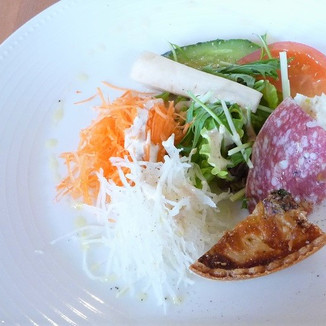 上の画像の真ん中は、今回のランチsetのメインで、地元産のひじきと小エビを使用したクリーム系の玄米リゾットなんですが、これが忘れがたい美味しさでした !(^^)! 写真では伝わりづらいのですが、胡麻の風味を効かせて大人向きの乙な味わいに仕上げられた、上品な和風のリゾットです 😋 これは是非また食べたいですねー!! さすがです、クッカーニャ!! 👏 👍