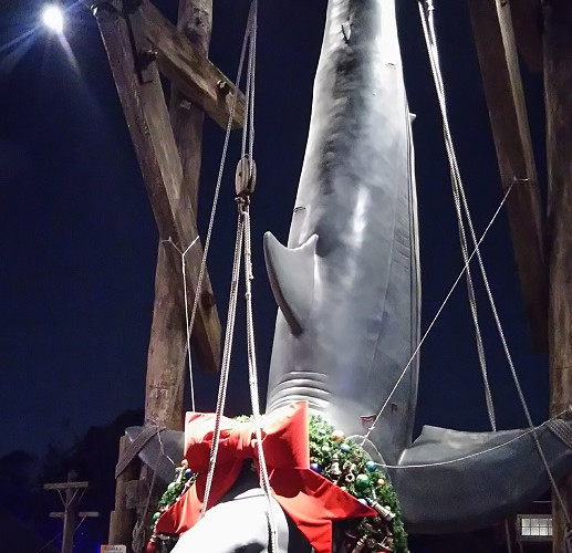 元々はクリスマス目当てではなかったのですが、年パス・ライトへの更新手続きを、除外日が始まる前に済ませておかねば!という理由で、12月20日に訪れたUSJで、真っ先に新しい鮫グッズが出ていないかどうかジョーズ・エリアのショップをチェックしたあと、すぐ近くにあるジュラシック・エリアで恐竜ウォークを見に行きました。クリスマスとは全然関係ないいつも通りの屋外アトラクションですが(^^;)、恐竜はいつ見てもいいッスね!👍