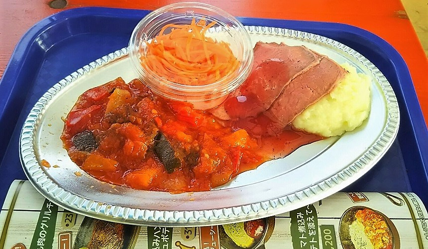 金曜日なので、18時以降は仕事帰りのサラリーマンたちでごった返すだろうな、と見越して、私たちはかなり早い時間、開場後すぐの16時過ぎからのスタートでした。 西日を避けるため中央の大型テントの中(リングみたいになった一段高いところ)に席を確保した私たちですが、そこは生演奏の防音のため、途中から透明のシートで四方を囲い込まれて、ビニルハウス状態にされてしまう蒸し風呂状態の場所w それと知っていれば外側の小さいテントに陣取ったのですが、周りの注意書きをよく見ていなかったので、そんな場所だとは気づかず、ちと失敗いたしましたwww (気付いたときには、すでに外の涼しい場所にいくつかある小さい方のテントは、人で埋め尽くされてしまっていました(-_-;))