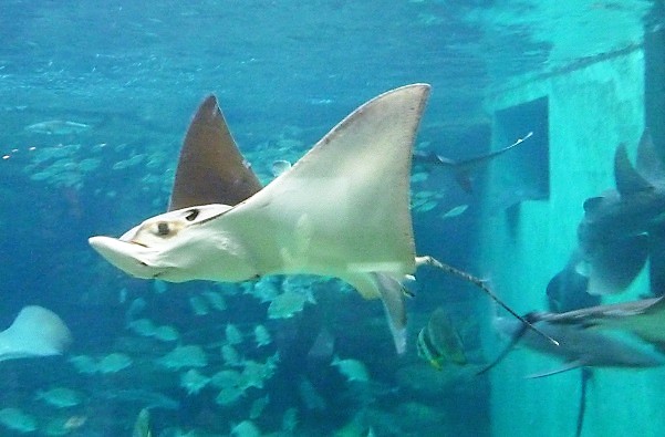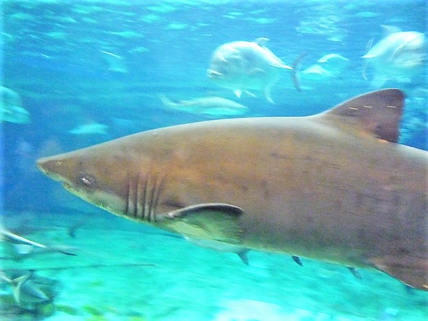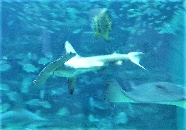 ちなみに、私はこの夏、7月中にも二度ほど須磨水を訪れていたのですが、そのときにはハナザメの姿は見当たりませんでした。なのでおそらく(私の見落としでなければ)、大水槽に渦中のハナザメたちがやってきたのは、それ以降の夏季ということになりますね。