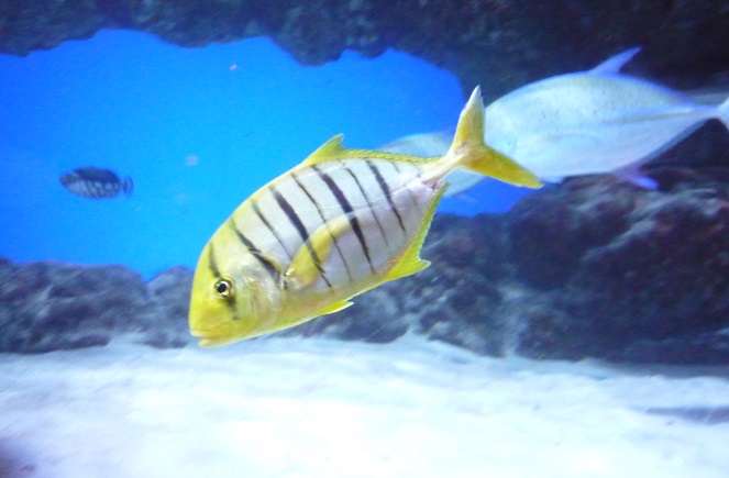 ここまで小さい稚魚を観る機会なんて、それこそめったにないことなので、可愛すぎて目がハートになり、私なぞはすっかり大興奮でウハウハ状態でしたが、実は内心ちょっと心配でもあります。もう少し大きいサイズで大水槽入りを果たしたドタブカの華ちゃんでさえ、シロワニの歯型と思われる噛み痕がついていて、一歩間違えれば食べられてしまっていた可能性があったので、こんなにも小さい稚魚となると、本来 大水槽ではなく、他の小さめの水槽に隔離して展示するか、あるいはもう少し大きく成長するまでバックヤードで育てるべきなのでは???と思うのです。
