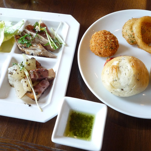ちなみにここの古城風レストラン、以前は前菜からメイン、デザート、ドリンクまで、すべてがバイキング形式で盛りだくさんだったのですが、この春メニューが一新されたらしく、前菜15種類だけがバイキングで、メインディッシュを一品選んでオーダーする形式に変わっていました。残念ながら、デザートや珈琲などは別料金。ハーブティーも、以前は色々選べたけど今は一種類だけ飲み放題です。