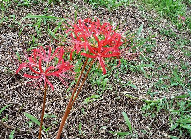 万博記念公園のときと同じく、かなり寂しい咲き加減・咲かなさ具合でしたが (^^;)、構いません。この日は時期的にまだ早いだろうと覚悟しつつ、園内のどのあたりで、どういう種類のリコリスが観られるのか、偵察のために行ったようなものだし、ナツズイセン自体はもう充分どんな姿だか確認しましたから。綺麗な満開は観られなくても、取材としてはすでに目的を達成していたのです。
