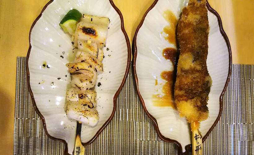 私たちは大将お任せのお造りからスタートして、マンタの串焼きやマンボウの腸の串焼き、名前はサメだけどサメじゃない深海魚ギンザメやヨロイタチウオ、禁断のノコギリザメ(← 生きたノコちゃんを見て可愛いと言いつつ!笑)など、普段食する機会のないものばかり狙って次々にオーダーしていきました! 言うまでもなく、完全に食べすぎw (^_^;) 夢中で食べ続けて、気付けばニフレルのイリエワニといい勝負をするくらい、胃袋がパンパンで はち切れそうになっていました Σ(゚д゚lll)
