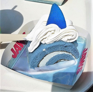 これが噂の青いケーキ、その名も『ジョーズが来るぞ!クリームソーダ・ロールケーキ』です! 🍰