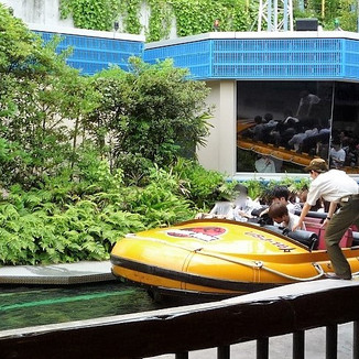 高所恐怖症の友人と一緒なので、ライドはJAWSの水上ライドぐらいしか無理だろうな、と半ば諦めていたのですが、スタッフの方に確かめてみると、ここのライドはJAWSと同じくボートで移動するタイプのもので、高いところへは行かないとのことだったので、これは乗らねば!と思い、挑戦してきました (/・ω・)/ お化け屋敷のお化けの代わりに恐竜がところどころに配置されている、といった感じで、それらのフィギュアはちょっとリアリティや迫力にかける印象でしたが(;^_^A、パニックを起こしやすい怖がりの友人と乗るには、ちょうどいい易しさだったかな、と。。。