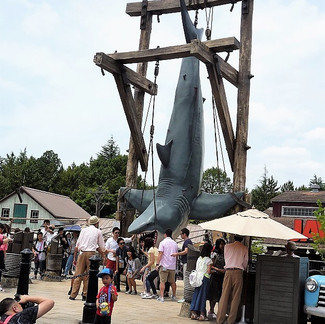 今回一つだけ残念だったのは、JAWSエリアのショップの鮫充実度が、前回訪れたときに比べてかなり落ちていたことです。前回は、映画のイメージに沿ってキャラ化したものだけでなく、シンプルに鮫本来のシルエットの美しさ・カッコ良さを活かした、ネックレスやストラップ、ハンカチなど、鮫ファンにはたまらない色んなタイプの鮫グッズが置いてあったのに、今回は種類が激減していて、「いかにもJAWS!」と一目にわかる映画のタイトルなどがデカデカと載ったグッズが殆どで、私好みの目新しい鮫グッズは全然見当たりませんでしたw