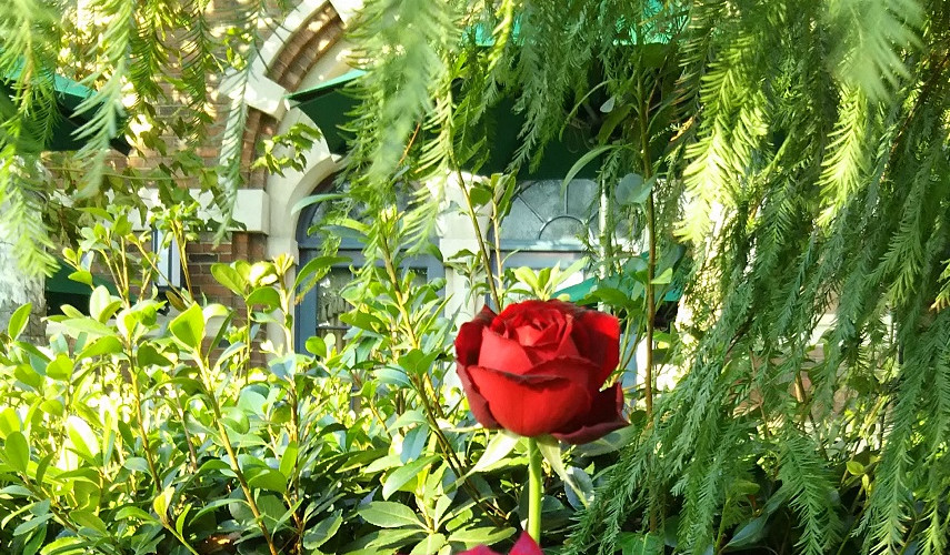 中途半端な時間にスウィーツ三昧でお腹がパンパンになってしまったので、少し腹ごなしをしなくてはと、パーク内をウロついていると、パーク中央付近の花壇で薔薇を発見!☟ そういやここは、意外にも薔薇園の充実した花スポットでもあるんですよね 🌹 紫陽花の時期も良かったですよ (^_-)-☆
